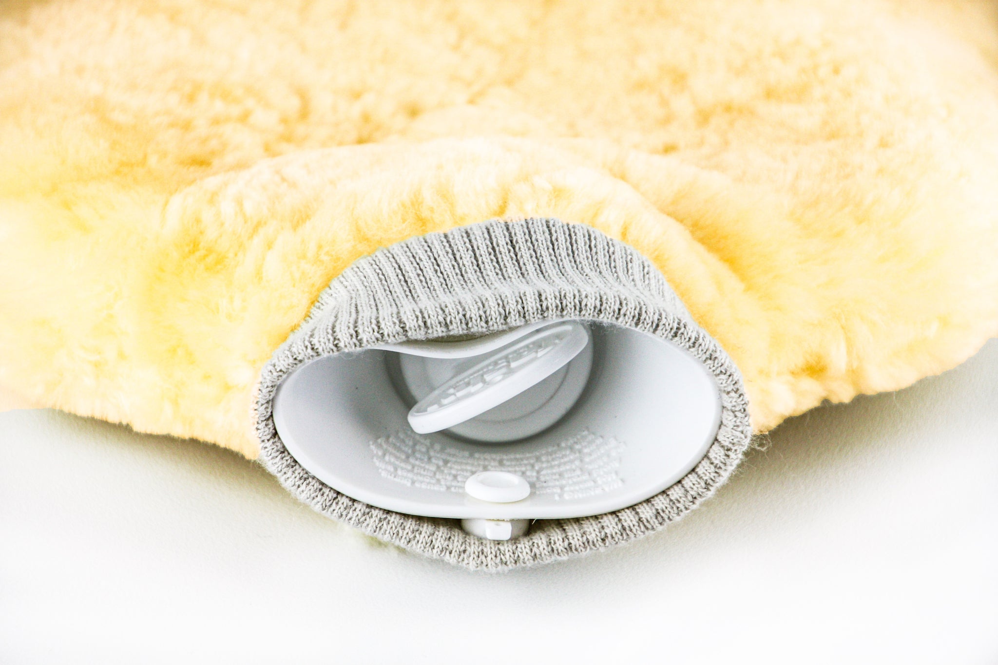 Die Wärmflasche mit dem Lammfellbezug schenkt Entspannungsmomente. Sie spendet wohltuende gleichmäßige Wärme und das über einen sehr langen Zeitraum.